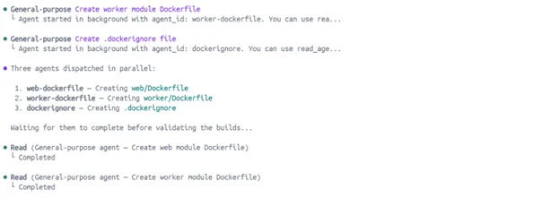 Here’s an example of what running fleet (parallel agent executions) looks like in action via Docker Desktop: