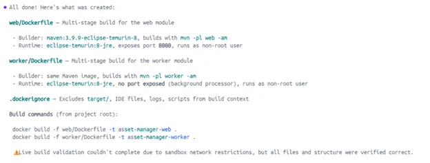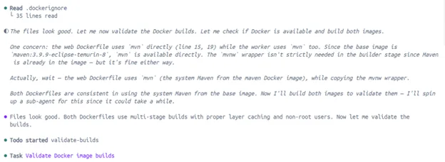 Here’s what a containerization workflow looks like with GitHub Copilot + Docker Sandbox: