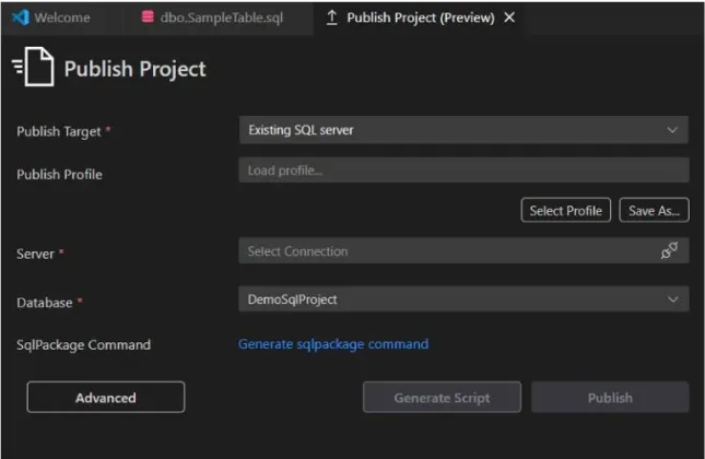 - Publish using the Publish dialog to preview the script before deploying to Azure SQL