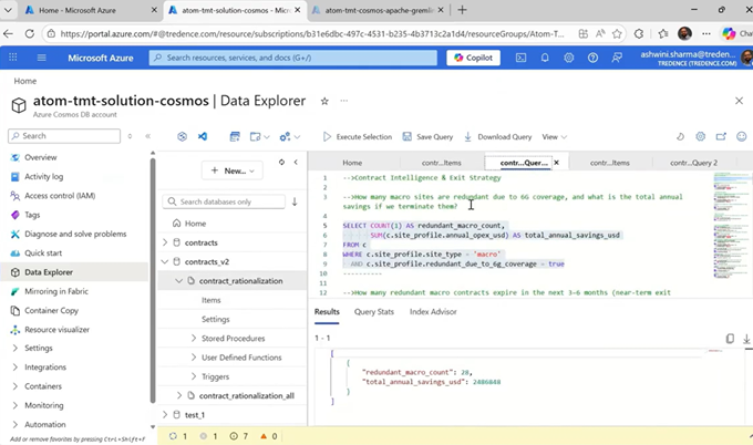Because contracts, metadata, embeddings, and site relationships were all stored in a common data platform, the system could support rich operational questions such as:
