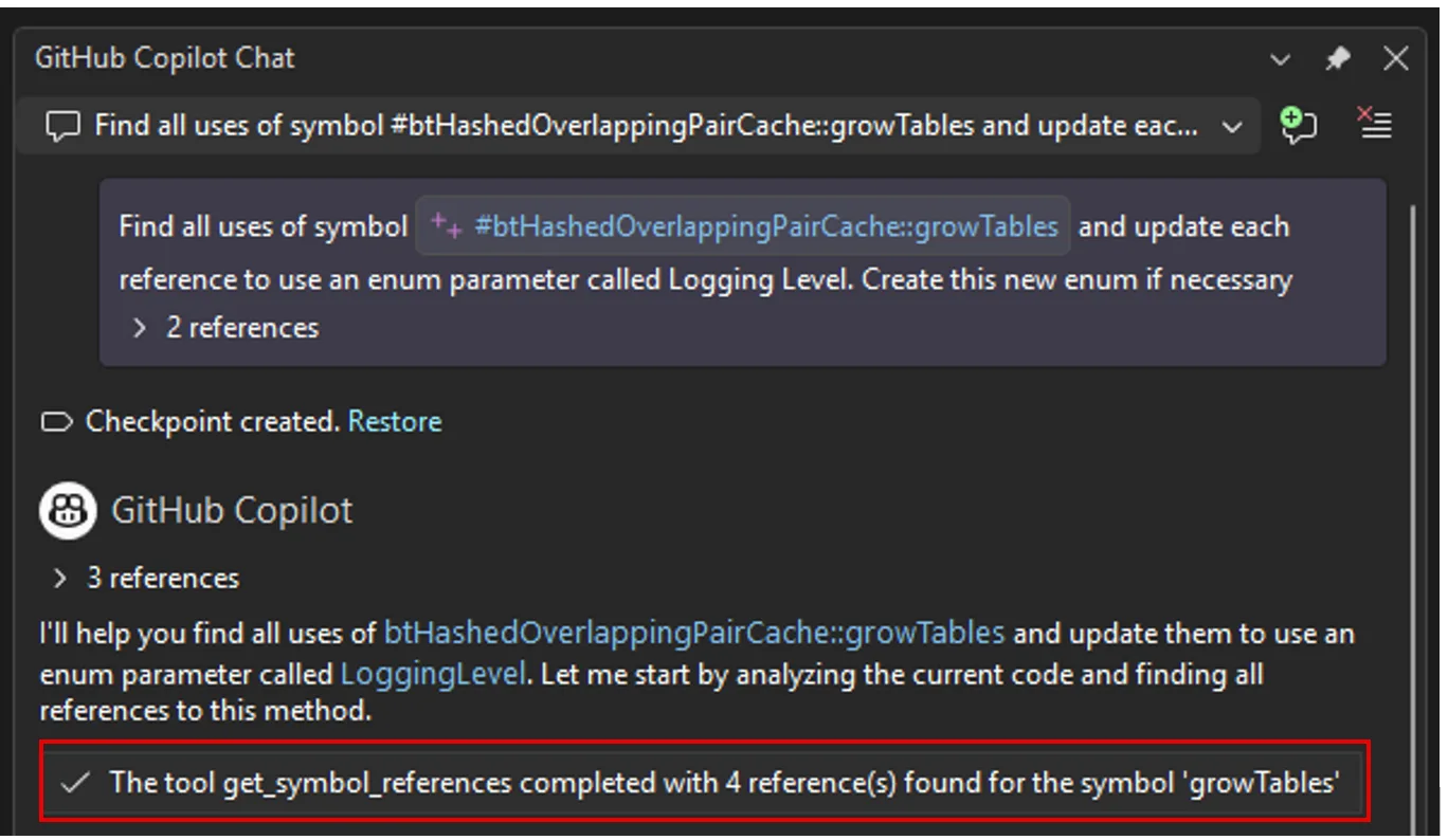 Refactoring a C++ codebase can often require tracking updates across various sections of multiple files to ensure accuracy and relevancy. Historically, developers have relied on manual searches across a codebase and refactoring tools to perform these types of edits. However, with GitHub Copilot agents, developers can now delegate these complex editing tasks to the agent, which understands your intent and can carry out codebase-wide edits, reducing the manual effort required to perform these refactors.