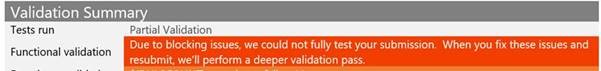 Our updated reports show you whether the validation team has completed a full test pass on your submission, or whether validation was blocked.