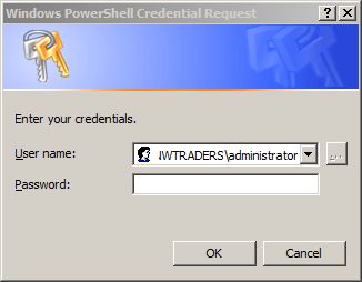 When the command runs, a dialog box is displayed to enable me to type the credentials. The dialog box is seen in the following figure.