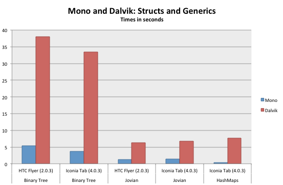So once you have Android running on Mono, the obvious question is — how does Mono perform compared to Dalvik?